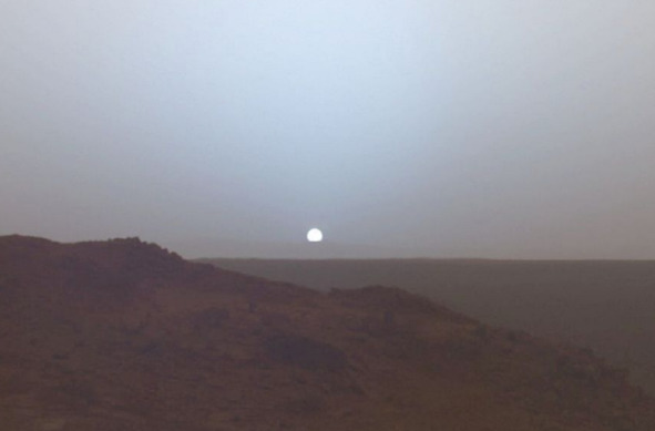 Подпись к первому «марсианскому» снимку: «Во время восхода и захода Солнца марсианское небо в зените имеет красновато-розовый цвет». [3] Но потом ситуация изменилась и пропагандисты НАСА стали доказывать, что небо на Марсе бывает синим и голубым, на закате: «Марсианское небо имеет в непосредственной близости к диску Солнца – от голубого до фиолетового, что совершенно противоположно картине земных зорь. Закат на Марсе 19 мая 2005 года. Снимок марсохода „Спирит“, который находился в кратере Гусев». [3]