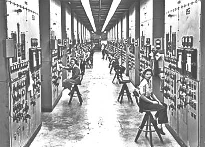 Операторы Calutron на заводе Y-12 в Ок-Ридже по обогащению урана (США). Глэдис Оуэнс, сидящая справа на переднем плане, не знала, чем она занимается на работе (здесь она работала 8 месяцев), до того, как увидела эту фотографию 50 лет спустя на общественной выставке