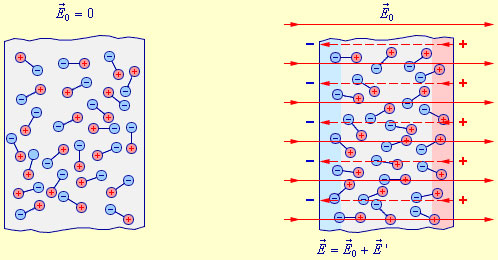 На рис. 1.2.5 (слева) показаны диполи воды без внешнего поля, а справа – при наличии поля E