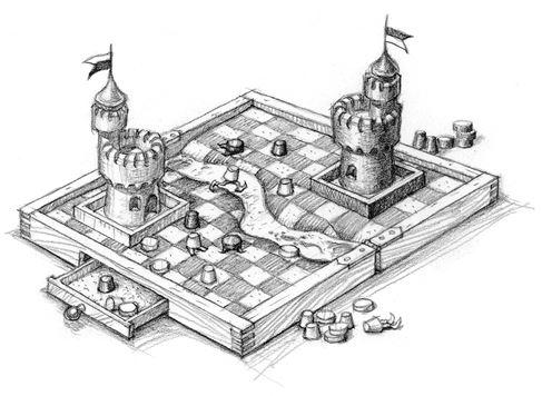 На первый взгляд это была простая игра с фишками. На доске для шустрых шашек стояло два замка, отделенных друг от друга рекой. У каждого игрока был набор фишек различных форм и размеров, и цель игры заключалась в том, чтобы перевести через реку как можно больше фишек и попасть в замок противника. Но особый азарт придавала игре одна хитрость: у фишек была своя голова на плечах, более того, у них были свои ноги.