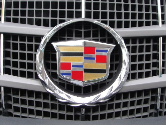 Очень многодетальная и многоцветная эмблема «Кадиллака»: на щите много разноцветных флажков.