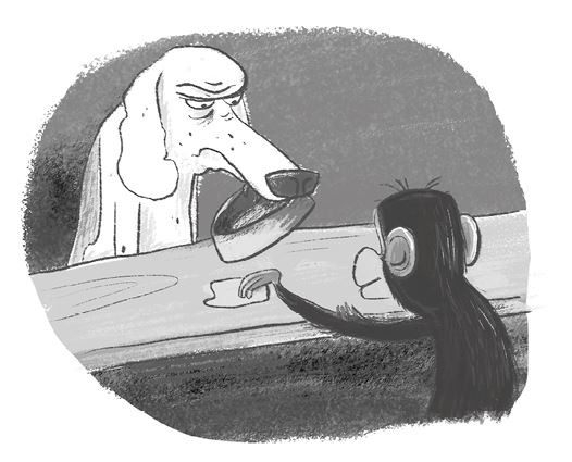 Максвелл повернулся и увидел двух обезьян. Одна вытирала стойку влажным листом, а вторая расставляла тарелочки с печеньем.
