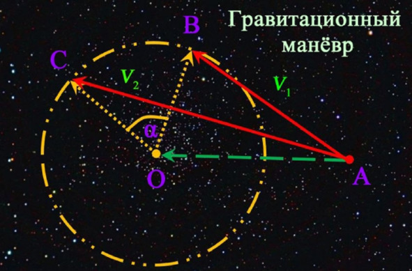 Например, в окрестностях Земли можно выполнить гравитационный манёвр путём сближения с Луной, а при полётах в пределах Солнечной системы возможны гравитационные манёвры около обращающихся вокруг Солнца планет». [1] Если Космический Аппарат (КА) пройдет слишком близко к поверхности, например, Юпитера, то даже включенные в момент разгона двигатели коррекции не помогут ему выскочить из гравитационного поля планеты гиганта. КА станет спутником Юпитера. Нужен, если верить американским пропагандистам Воронцову и Афанасьеву, энтузиасту и поклоннику американской версии Янчилину, правильный расчет траектории КА: «Гравитационный манёвр. Если ракета пролетит рядом с планетой, её скорость изменится. Либо уменьшится, либо возрастёт. Это зависит от того, с какой стороны от планеты она пролетит». [2]
