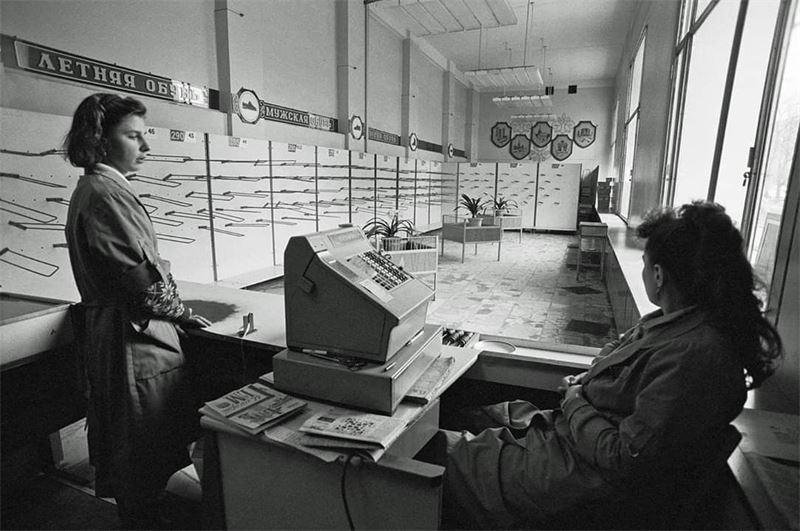 Обувной магазин в Москве в декабре 1991 г.