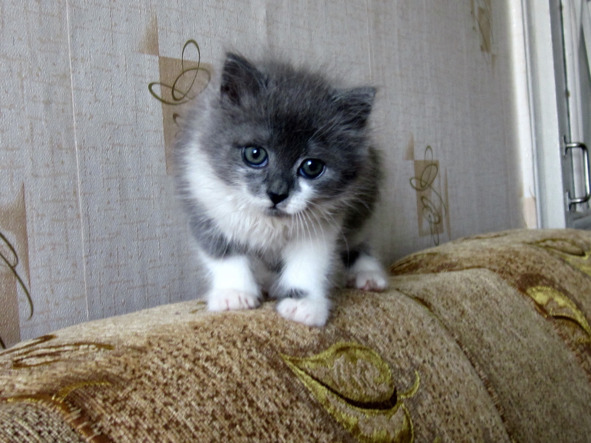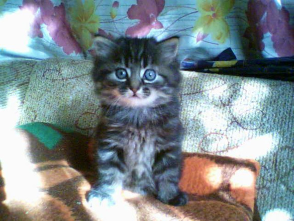 Купила я этого котенка не дорого. Но он оказался кошкой. Кошечка так царапалась, что пришлось её нести домой в сетке для продуктов. В комнате я её выпустила. Лоток для туалета был приготовлен заранее из ванночки для проявления фотографий. Когда кошечка пописала, я промокнула мочу туалетной бумагой и положила эту бумажку в лоток. Кошечка сразу же поняла, что это для неё. Проблем с туалетом больше не было, она ходила в лоток на туалетную бумагу. Я назвала её Дымка.