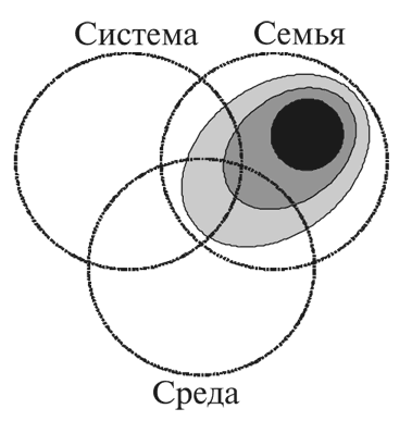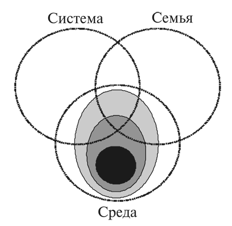 Если ролевую структуру личности (см. рис. 7 на стр. 27) окрасить по уровням (чем глубже, тем интенсивней штриховка) и разместить ее в пространстве, очерченном основными сферами общения, выводы о желательном и неприемлемом напрашиваются сами собой.