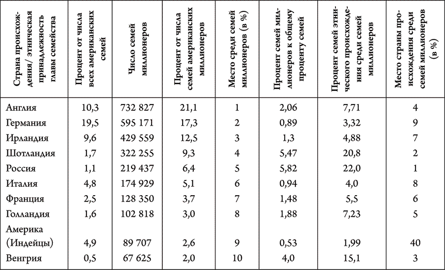 Таблица 1.1. Этническое происхождение американских миллионеров: первые десять мест