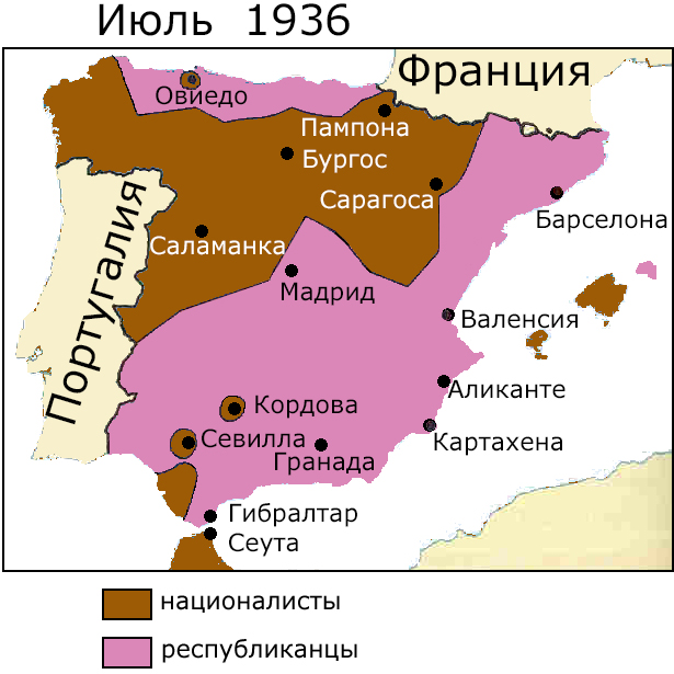 Изменилась и позиция Рима. Сдержанность уступила место честолюбию и стремлению к экспансии. К тому же министр иностранных дел Италии – зять Муссолини, граф Чиано был сторонником военного вмешательства. Как и Гитлера, итальянских правителей заинтересовали природные богатства Испании и ее стратегическое расположение в Атлантике, на стыке Европы и Африки. Начались поставки в Испанию и итальянских боевых самолетов.