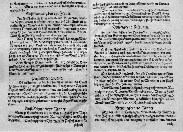 Брошюры предложили новый формат изложения новостей – лучше адаптированный под запросы современного общества. Акцент делался на самых ярких событиях, сражениях, преступлениях, и освещались они в момент происхождения. Более того, в брошюрах делалась попытка найти причину и объяснить последствия тех или иных событий. Впрочем, ввиду того что это была религиозная эпоха, новостные брошюры также распространяли и мысли о том, что король всемогущ, что злоумышленники получают по заслугам, и что несчастные жертвы природной катастрофы несут наказание за свои грехи.