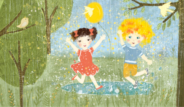 Когда фильм закончился, неожиданно появились капли дождя. Все поспешили спрятаться, а Сонц с Марусей спокойно пошли в направлении дома. По дороге дождик усилился, однако это был очень теплый летний дождь. Сонц немного заволновался, что они промокнут, а Маруся, наоборот, наслаждаясь мгновением, подставила лицо каплям и начала кружиться под дождем. Промокшие, но в хорошем и легком настроении, они пошлепали по лужам домой.