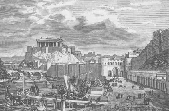 W tym czasie (a dokładniej 492 pne) nowy władca Persji, Dariusz I, zakłada imperium Achemenidów, w skład którego wchodzą między innymi Syria, Azja Mniejsza i Egipt. Oskarżając Greków o pogwałcenie traktatu związkowego, sformalizowanego w małym tekście jako wejście do tego imperium, wysyła do Grecji oddział ekspedycyjny liczący 25 000 żołnierzy, ale otrzymuje zdecydowaną odmowę od założycieli demokracji. Persowie tracą 7 000 żołnierzy, Grecy zaledwie 194. 19 lat po bitwie pod Maratonem, która nie wygasła od dwóch i pół tysiąca lat, następuje bitwa pod Termopilami i morska bitwa pod Salaminą. Oddziały syna Dariusza, Kserksesa, ponoszą ostateczną klęskę pod greckim Plataea.