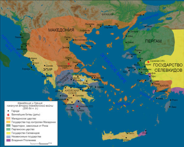 Macedonia (północna część Półwyspu Bałkańskiego), greckie królestwo, a wcześniej, nawiasem mówiąc, były wasal Persji powstaje i zakłada swoje garnizony we wszystkich głównych miastach-państwach Grecji.