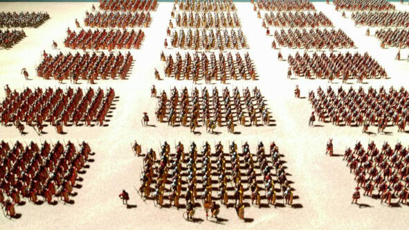 Legion wystawiony z maszerującej kolumny podąża do miejsca bitwy za pomocą manipulatorów lub centurii, umieszczonych w układzie szachownicy. Ułatwia to poruszanie się po trudnym terenie. Następnie kwadraty złożone z wojowników są przestawiane w trzy ciągłe linie. «Bracia» miotają pilumami, czasami jedną salwą zmuszają wroga do ucieczki, zamykając tarcze i dobywając mieczy.