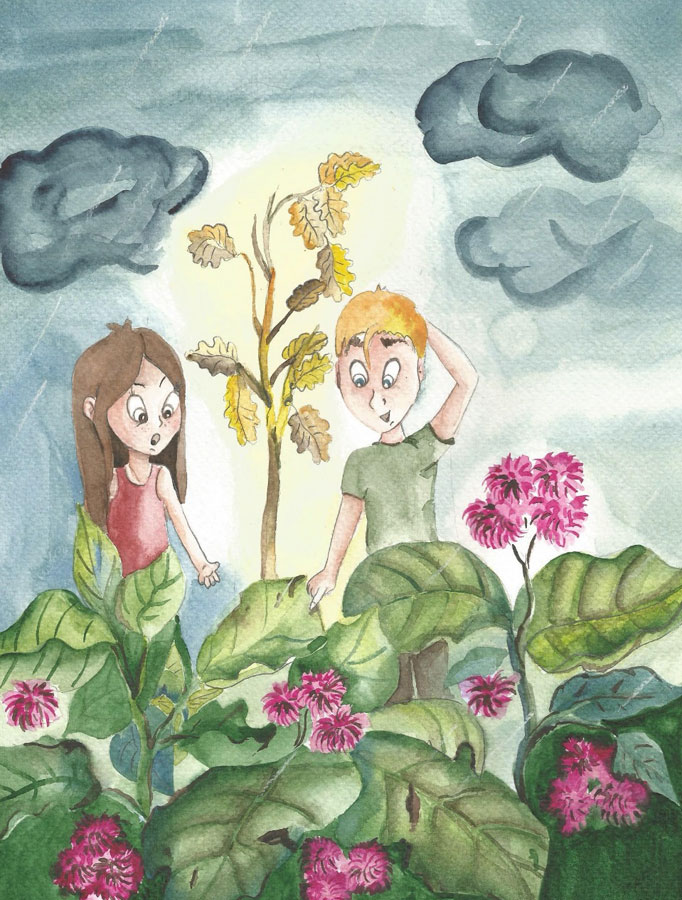Они рвали колючки и лепили их на футболки, но ничего, совершенно ничего не происходило. Дождь не прекращался, но дуб светился уже не так ярко – наверное, у тучи заканчивались капли для волшебного дождя, оставались только обычные.