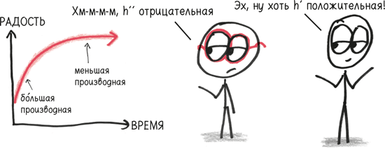 – Отрицательная производная означает, что значение уменьшается. Для некоторых функций – например, личного долга или физической боли – хотелось бы иметь отрицательную производную. Но в случае со счастьем – да, это не очень хорошо.