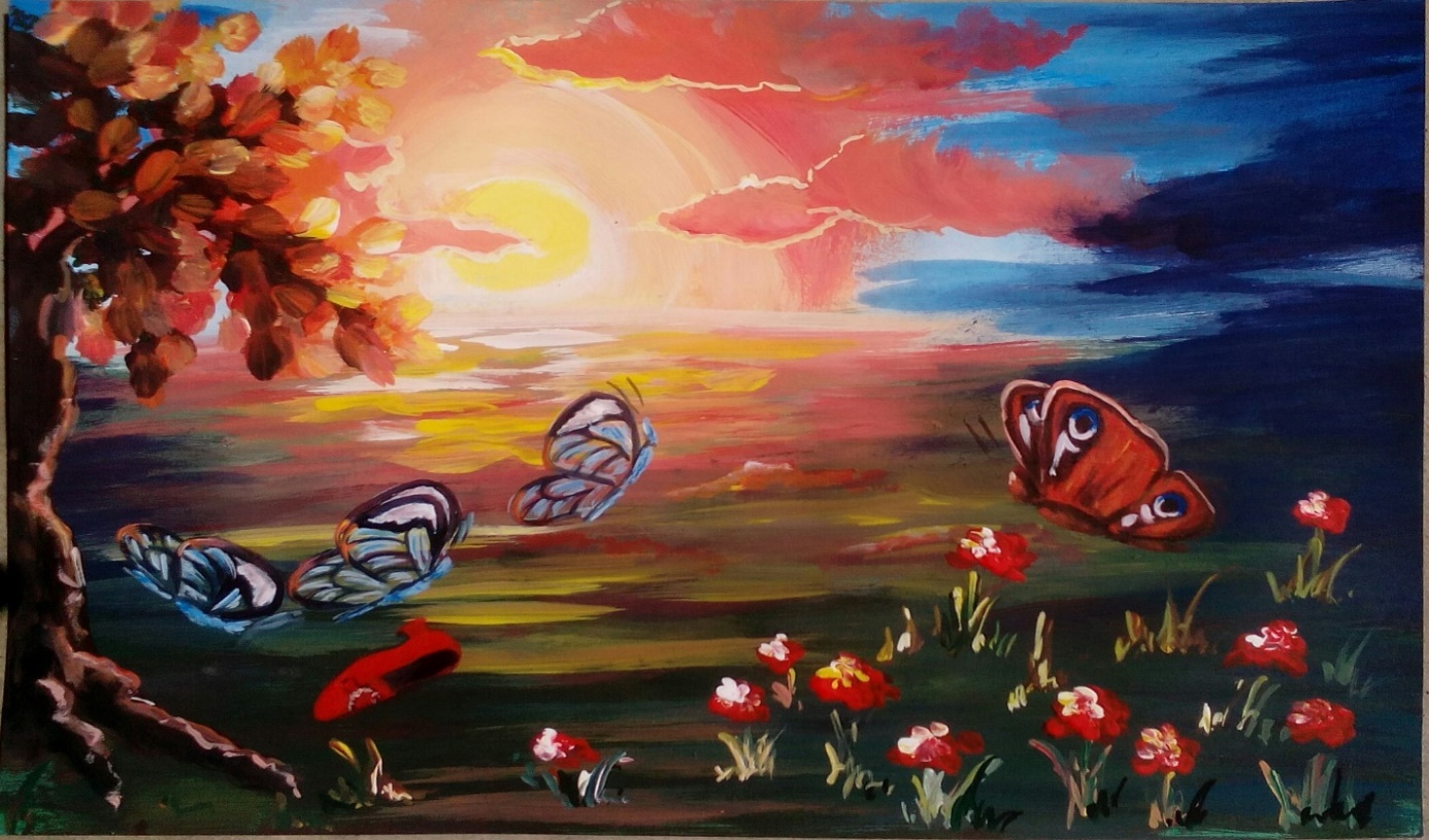 Однажды, в далёкой фантастической стране, там, где всегда светит солнце, текут холодные ручейки и растут зелёные леса, раскинулась сказочная поляна, усыпанная яркими цветами. На этой поляне стоял старый одинокий дуб. Его ствол был таким широким, что даже десять человек не обхватили бы его. А разросшиеся корни, как щупальца спрута, дугообразно вылезали из-под земли. Его густая листва простиралась на длинных ветках, как огромный зонт, под которым всегда была прохладная тень. На краю сказочной поляны журчал ручеёк, а сама она была окружена таинственным лесом. Бабочки любили летать по лесу, но там существовали опасные для них места, куда они не летали. Только лишь на сказочной поляне, где они жили, было безопасно. Это место было их домом, страной бабочек и называлось Има́го (лат. – бабочка, взрослая особь).