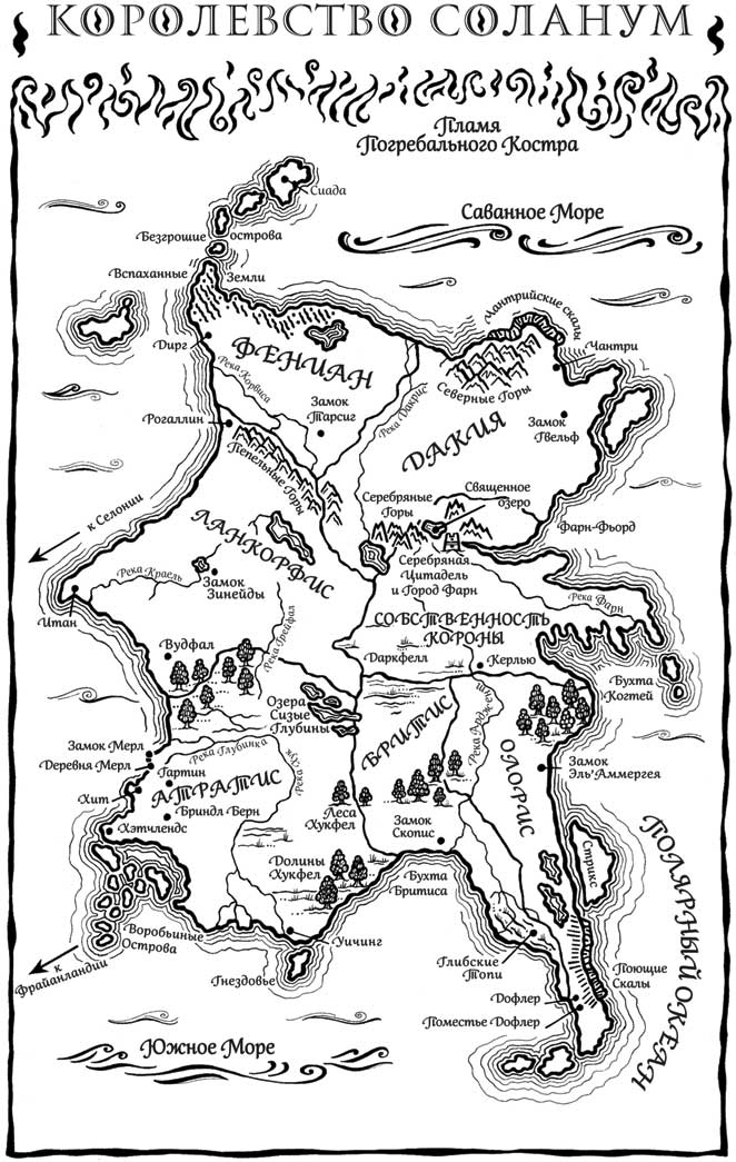 Весь последний месяц валит безжалостный снег: без конца падают с неба ледяные перышки, до того плотно, что через них невозможно пролететь. Стеклянный восьмиугольник в большом зале скрипит под его белоснежным весом. Но этим вечером, хотя бы на время, облака рассеялись, и под холодным свечением звезд жители Серебряной Цитадели отмечают праздник зимнего солнцестояния, Глубокую Тьму, первое солнцестояние моего правления. Сосновые поленья потрескивают в каминах. Благовония смешиваются с ароматом вкусностей, которыми завалены столы. Жареная оленина, все еще шипящая, только с вертела; зимние коренья, брошенные в пряную муку и поджаренные в подсоленном масле; сливовый пирог с сахарной глазурью и тридцать или более прочих блюд. Тысячи свечей пылают в вычурных хрустальных канделябрах во тьме этой долгой морозной ночи.