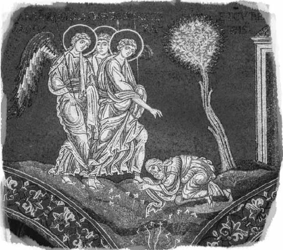 Авраам поклоняется трем ангелам под Мамврийским дубом. Мозаика. XII в.