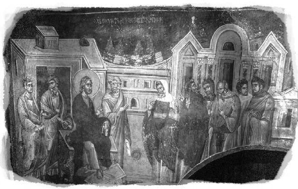 Горе вам, книжники и фарисеи. Фреска. XIV в.