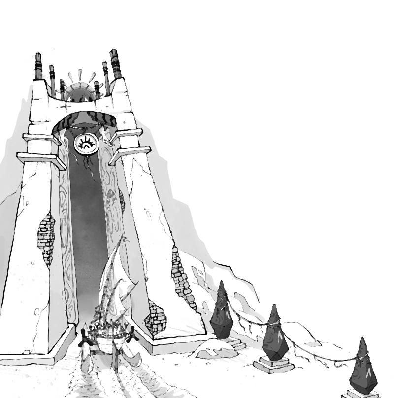 Сани подошли вплотную к огромным воротам, которые пропускали сани к горе – и к самой крепости Аврора. Караульный, стоявший на страже наверху, подул в изогнутый рог, и его клич разнёсся по снежной равнине, сообщая о прибытии «Ледяного сердца». Эш разглядел на могучих деревянных дверях причудливые узоры – резьбу, которая, по-видимому, рассказывала историю следопытов. Впрочем, у мальчика не было времени рассмотреть её как следует. На палубу «Ледяного сердца» хлынула ледяная пыль, когда сани прошли через ворота внутрь самой горы. Йалла, инженер саней, погасила двигатель на солнечном камне, и «Ледяное сердце» остановилось внутри глубокой пещеры. Места в ней было как раз достаточно, чтобы вместить судно.