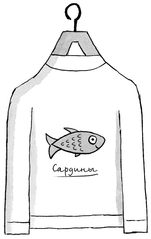 Нелли обожала свой рабочий свитер. Он был фиолетовый, с ярко-оранжевой отделкой, а прямо на груди большими серебряными буквами были написано «сардины». Никто (включая Нелли) не мог понять, с какой стати на свитере напечатали слово «сардины». Но именно поэтому он нравился Нелли. Потому что не походил на другие.