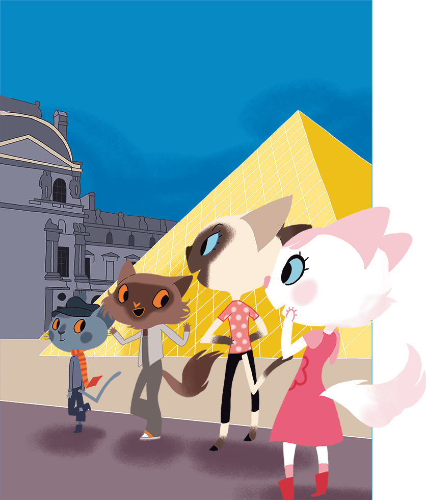 Котики шагают гуськом и вслед за Персиком выходят на улицы Парижа. Куда же они направляются?