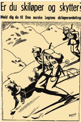 Так Биргер Краннер изобразил службу в будущей лыжной роте Норвежского легиона, или «лыжном подразделении», как написано в объявлении в газете «Fritt Folk» в сентябре 1941 года. Однако в Карелии норвежских фронтовых бойцов вовсе не ждали крутые горки и собачьи упряжки. Лыжная рота Легиона по своему названию являлась предшественницей лыжной роты и лыжного батальона