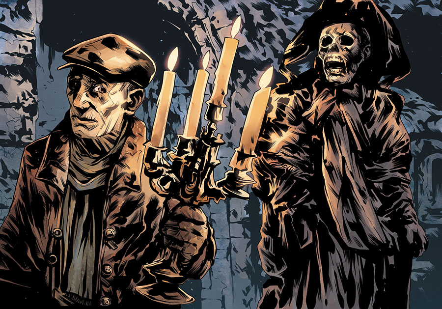 Возвращаясь вечером домой, столяр услышал позади себя скрипящий звук. Однако каждый раз, как он оборачивался, ничего видно не было. Довольно скоро столяр понял, что его преследует призрак покойной. Скрип раздавался от упиравшейся в снег палки. В конце концов столяр остановился и злобно прокричал: «Пошла прочь, покойница!» Скрип резко прекратился, и какой-то голос ответил: «Сначала попроси у меня прощения за то, что сделал для меня слишком тесный гроб!» Столяр фыркнул и ответил: «Убирайся к черту! Я не боюсь таких калек, как ты!»