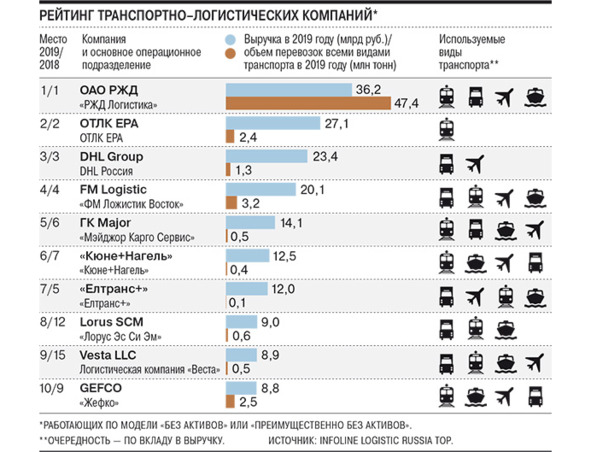 По итогам 2019 года названы 10 крупнейших транспортно-логистических компаний России.