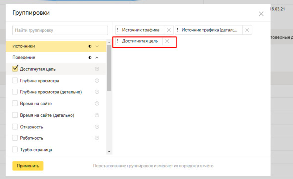 Так же используйте «плюсики» (уточнения по типу «визиты, в которых»), так как Яндекс Метрика, позволяет смотреть по узким сегментам, ВАЖНО настраивать отчеты по дополнительным условиям, например, только клиентов, пришедших с рекламы.