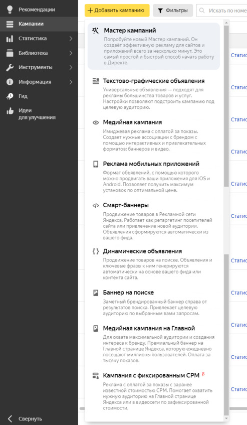Вариантов рекламы в поисковиках есть много, начнем обзор с поисковых кампаний.