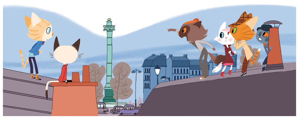 Бланш, Персик и Богарт сидят на крыше магазина «Кошан» и греются у каминной трубы. По словам Беберта, в Париже не было так холодно со времён… люстр и фонарных столбов. Сам Беберт пытается согреться, выполняя невероятные акробатические трюки, но на него никто не обращает внимания.