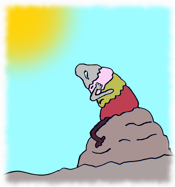 किसी और समय, जब गर्मी की तपन खास तौर से ज्यादा थी, वह कुछ आलसियों को ढूँढ़ने में कामयाब रहा। लेकिन यह कभी लंबे समय तक नहीं चला : आखिर कोई भी हमेशा तो आलस कर नहीं सकता। इसलिए उन्हें काम करना पड़ा, करना पड़ा और करना पड़ा, ताकि उनका हाल ईसप की कहानी के टिड्डे जैसा न हो जाए, जो सर्दियों के लिए खाना जमा न करने के कारण भूख से मर गया था।