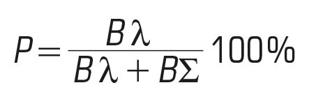 где P – чистота цвета; Bλ – яркость чистого спектрального цвета (= 100 %); B ∑ – яркость белого цвета в смеси.