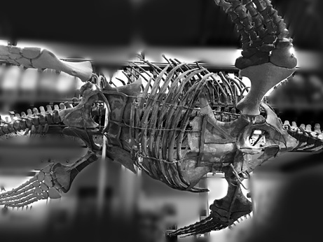 У некоторых древних птиц и пресмыкающихся, включая эту вымершую морскую рептилию (на рисунке показана нижняя часть ее скелета), были брюшные ребра. Они располагались между грудиной и тазом и были соединены друг с другом, но не с остальной частью скелета