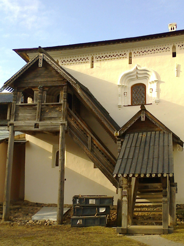 Деревянное крыльцо Лихудова корпуса в Новгородском кремле.