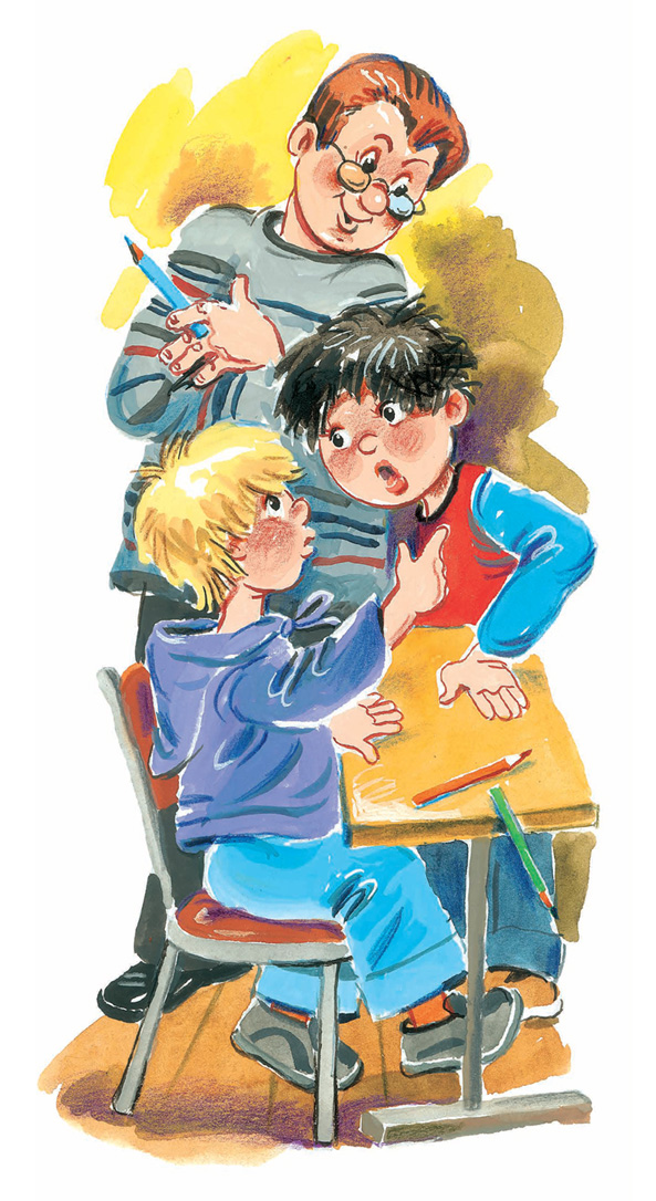 Сидит он посреди коридора и думает: «Что же делать?» Звонок прозвенел. Все в классы ушли, а Ника всё думает.