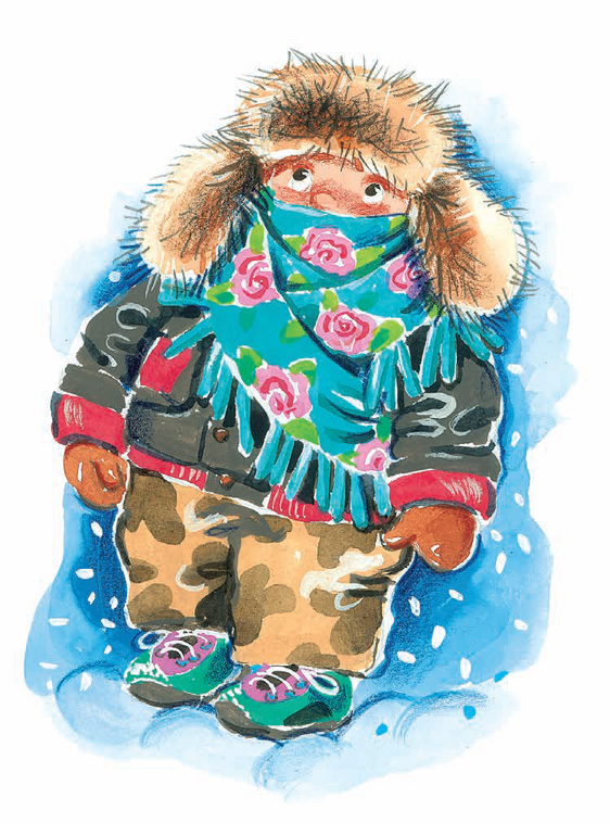 Этот мальчик был так закутан, что на него нельзя было смотреть без смеха. Поверх всего он был обмотан большим шерстяным платком. Из сплошного клубка одежды торчали лишь нос и два глаза.