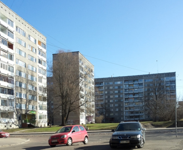 Apbūve – privātmājas, kuras saglabājušās vēl no A. Dombrovska laikiem, ir arī padomju laika 9-stāvu 467. un 602. sērijas paneļu nami, Hruščova, Staļina laiku nami, kā arī jaunie lietuviešu projekta nami.