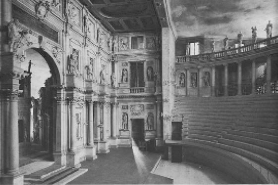 Театр «Олимпико», украшенный неподражаемым фасадом, имитирующим frons scaenae древнеримского театра (см. ил. 17), представляет собой одновременно вершину академического направления театральной архитектуры эпохи Ренессанса и тупик в ее развитии.