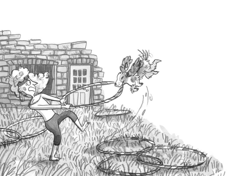 Джек нерешительно приблизился к кричащей женщине, гадая, сумеет ли подманить к себе собаку, но та определённо не планировала расставаться с новой игрушкой. Джек посмотрел на братьев Бакли, в надежде получить помощь, однако те повизгивали от хохота и явно не собирались помогать своей тётке: как раз сейчас она шлёпнулась на пятую точку и ехала по траве, а Дотти тянула обруч на себя.