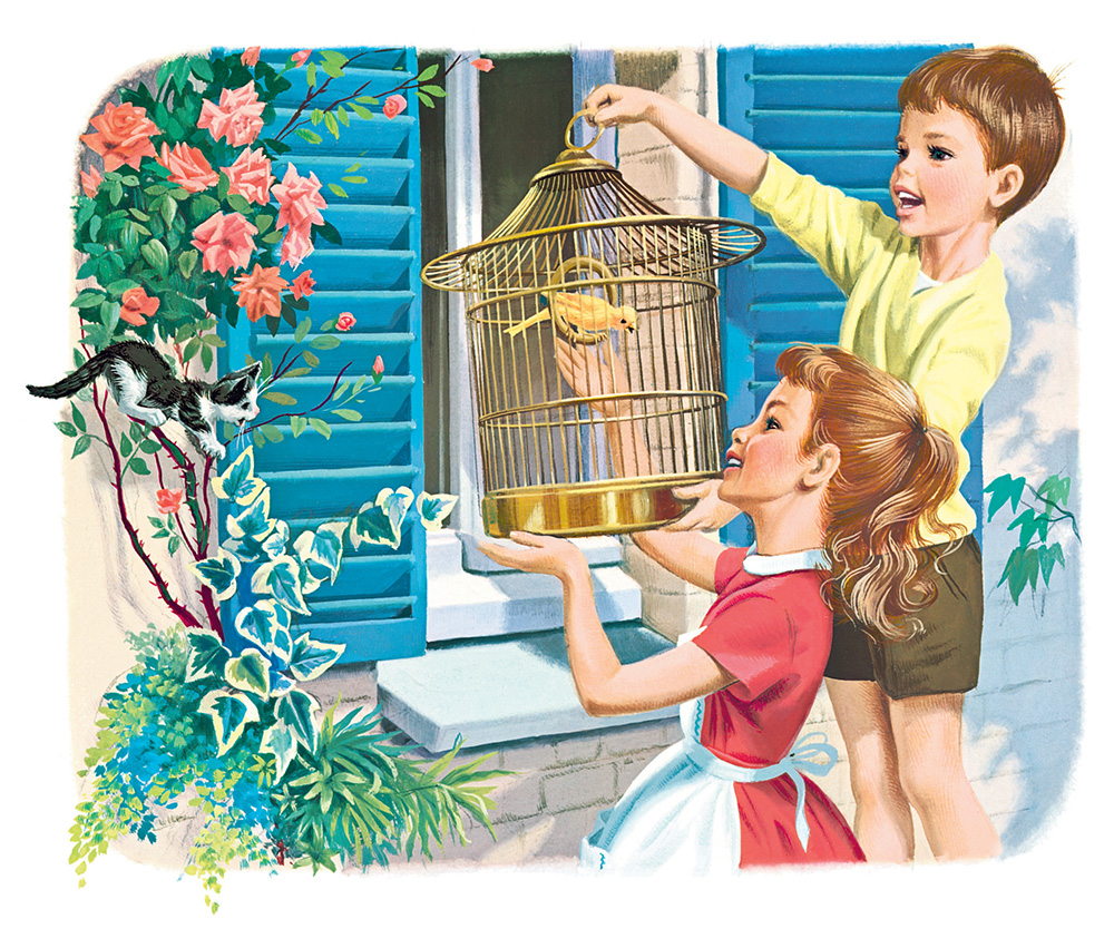 Так мы и сделали. Повесили клетку на крюк у окна.