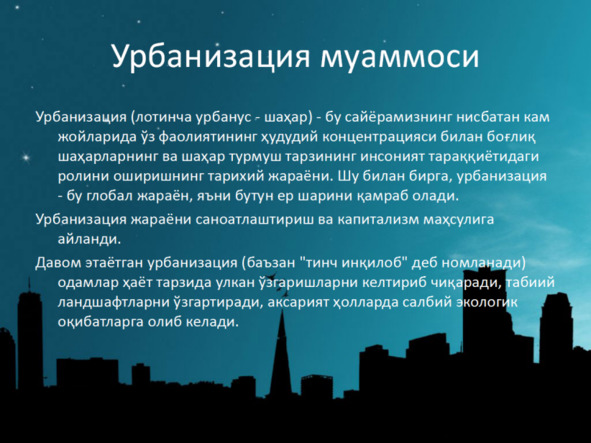 Урбанизация муаммолари