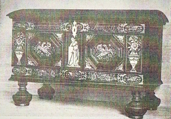 Доминирование росписи не означало полного исчезновения резьбы как средства украшения сундуков. Так, в той же Баварии до XIX века сохранился тип средневековых сундуков в виде саркофагов. Их лицевая стенка и крышка украшались полосами различных геометрических фигур: прямоугольников, кругов, треугольников, косых насечек и т. д.