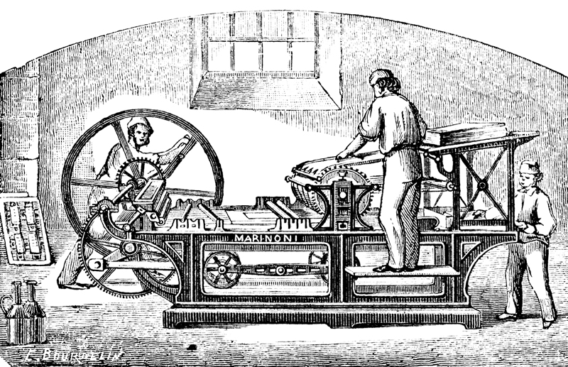 «Я был свидетелем введения полиграфических машин… За пятнадцать-двадцать лет, что утвердилась механическое производство, часть рабочих потеряли работу, другие покинули свою страну, некоторые умерли от нищеты: так происходит перестройка рабочих в результате промышленных инноваций».