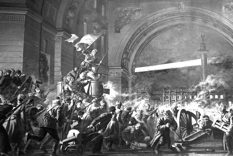 На репродукции: картина П. П. Соколова-Скаля (1899—1961 гг.) «Штурм Зимнего дворца»
