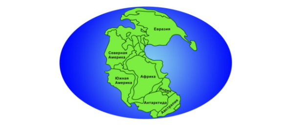 Если хотите посмотреть как выглядела Пангея применительно к современной политической карте мира, то получится примерно следующее. Это сейчас Индия и Китай соседи, а тогда они находились на противоположных полюсах Земли. И слиплись они между собой после долгого, долгого плаванья материка Индии по просторам Индийского океана. Так что не существует никакого затонувшего материка Му. Он не тонул, он просто долго плавал и я его успела позабыть…