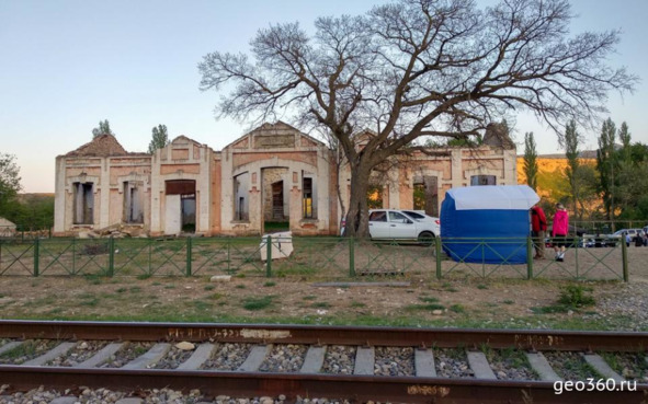 Заброшенная станция Кумъ-Торкале у подножия бархана Сарыкум