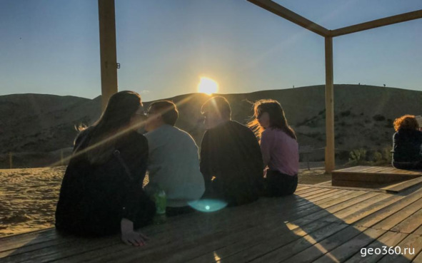 Закат на смотровой площадке на бархане Сарыкум