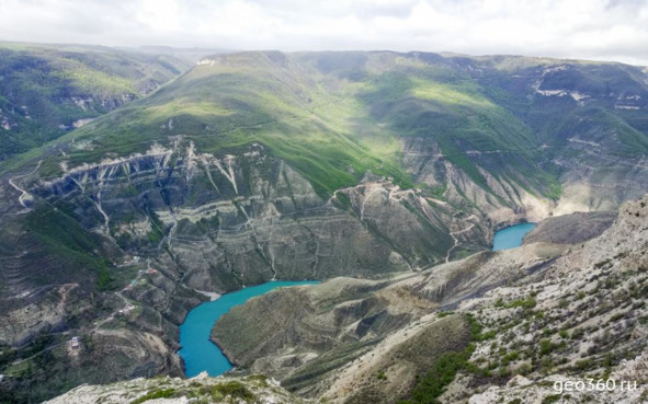 Дорога идет по склону вдоль каньона и спускается серпантином к деревне Зубутли. Она находится как раз напротив поселка Дубки, только на противоположной стороне каньона и ниже на 2 км – внутри ущелья на берегу реки Сулак. Отсюда начинается прогулка по каньону на катере.